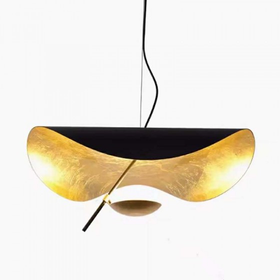 Lustre chapeau forme feuille d'or Couleur extérieur noir et intérieur doré Diamètre 60cm Lumière led décoratif 3...