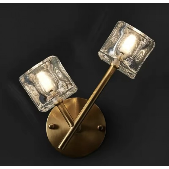 Applique 2 lampes Couleur doré brossé Matière métal + verre Longueur 26cm Dimension verre carré 7cm*7cm 2 filetage G9