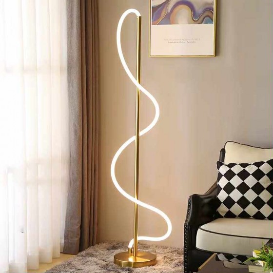 Lampadaire design tube Couleur doré brossé longueur 1.70cm Eclairage led 3000K Coupe-fil ON/OFF