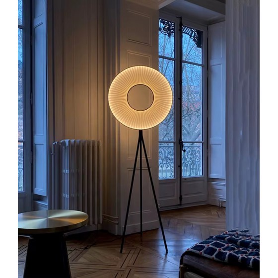 Lampadaire moderne Couleur trépied noir et anneau lumineux Eclairage led 3 couleurs:6500K-4000K-3000K Matière métal et tissu...