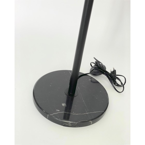 Lampadaire Noir Longueur 1,63cm Diamètre socle marbré 28cm Dimension chapeau: D40-32cm / L27cm Socle en marbre noir Tige...