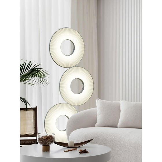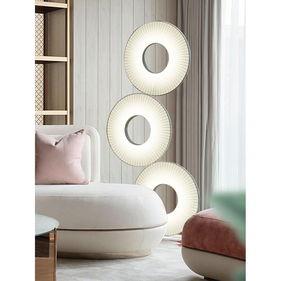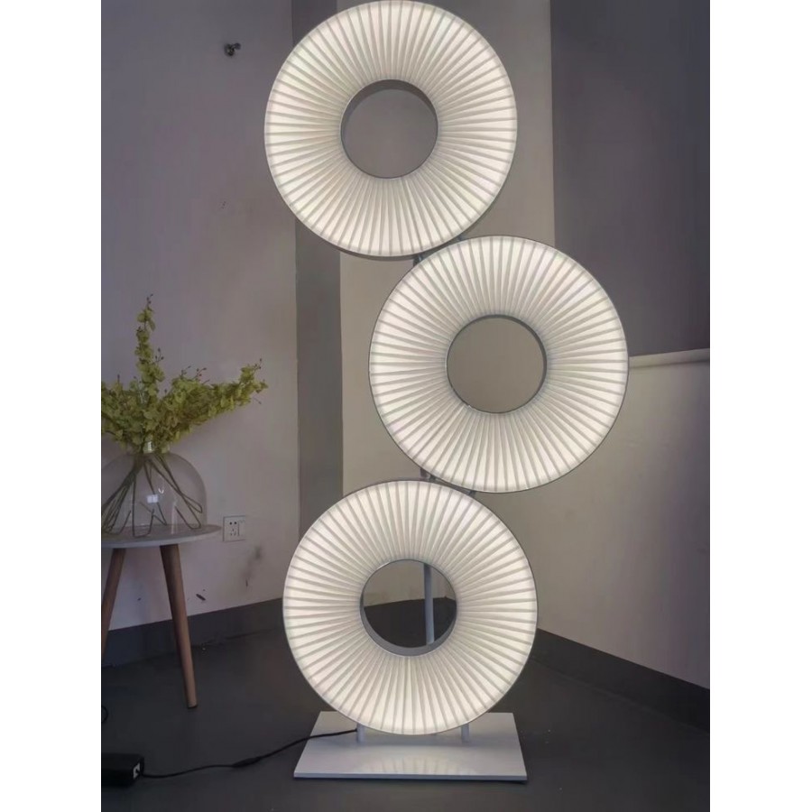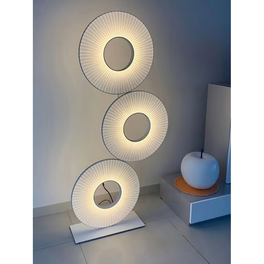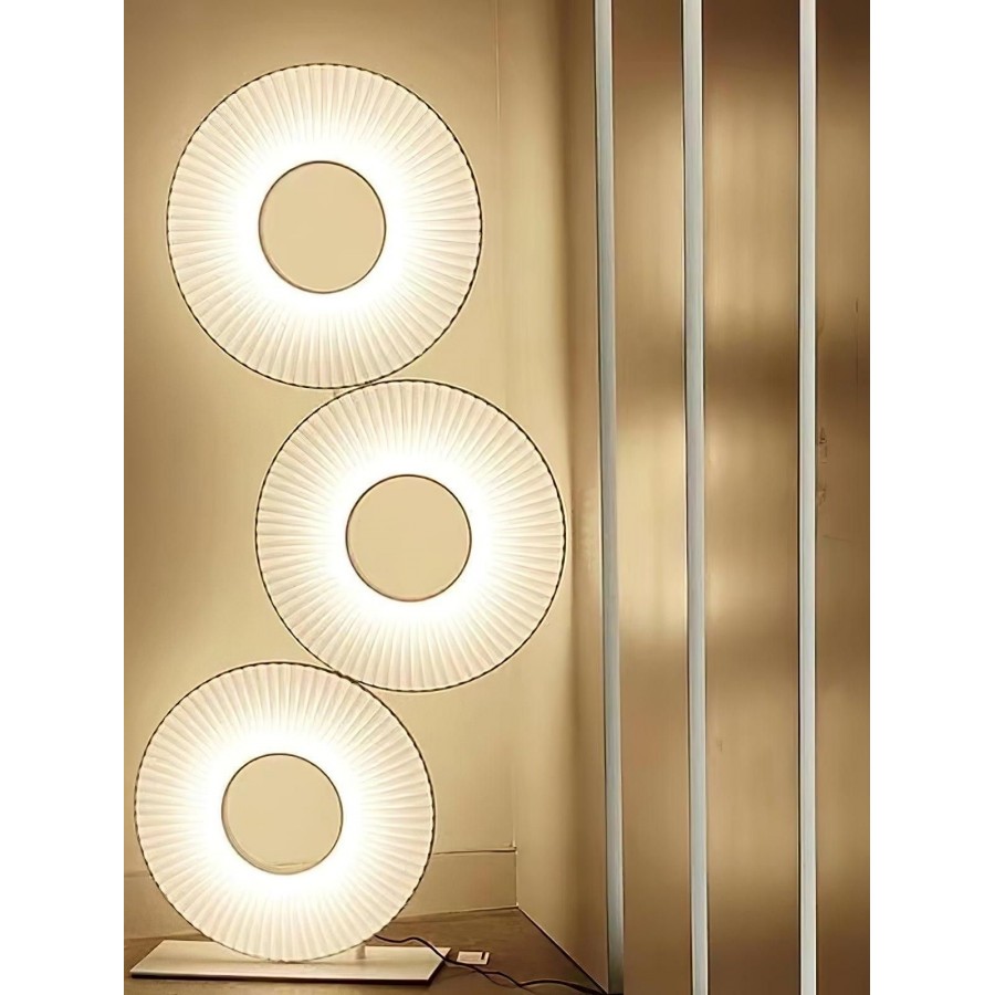 Lampadaire moderne Couleur trépied noir et anneau lumineux Eclairage led 3 couleurs:6500K-4000K-3000K Matière métal et tissu...
