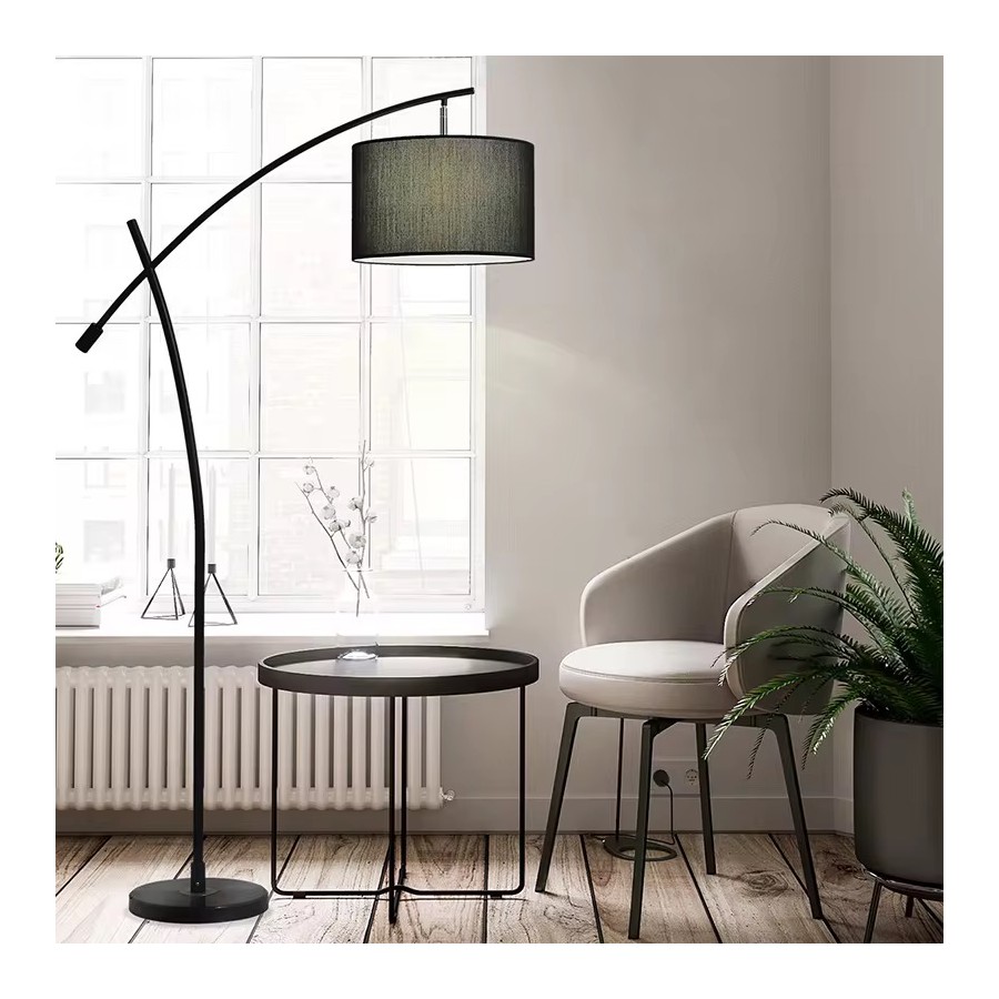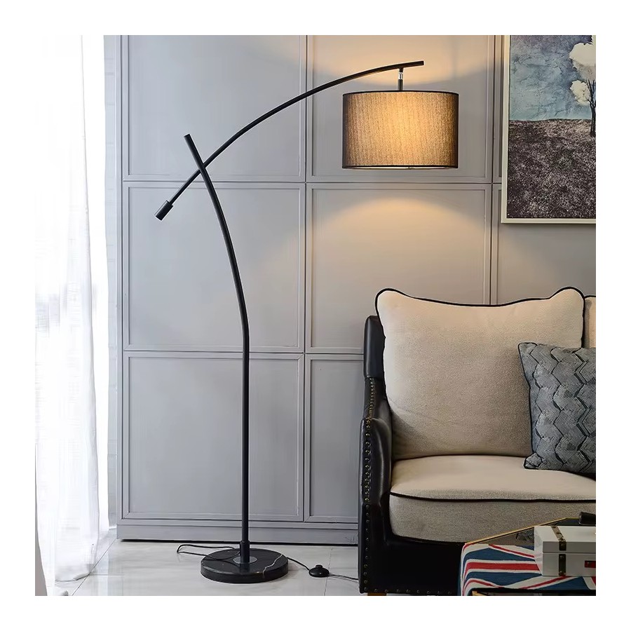 Lampadaire en forme d'arc Couleur noir Matière métal et socle en marbre Hauteur réglable jusqu'à 2,15cm Diamètre socle 37cm...