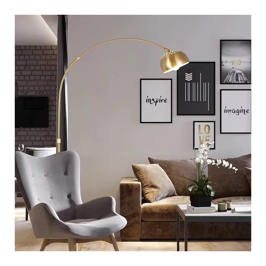Lampadaire en forme D'arc Doré brossé