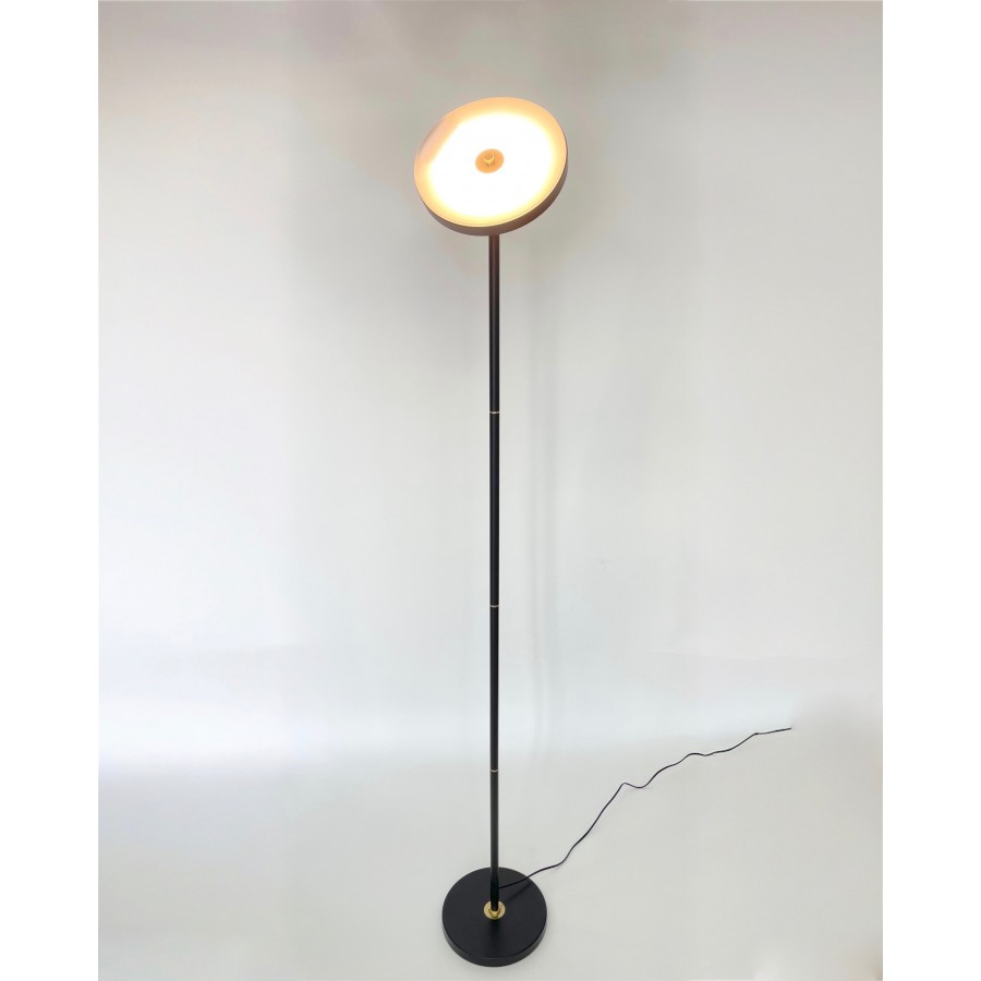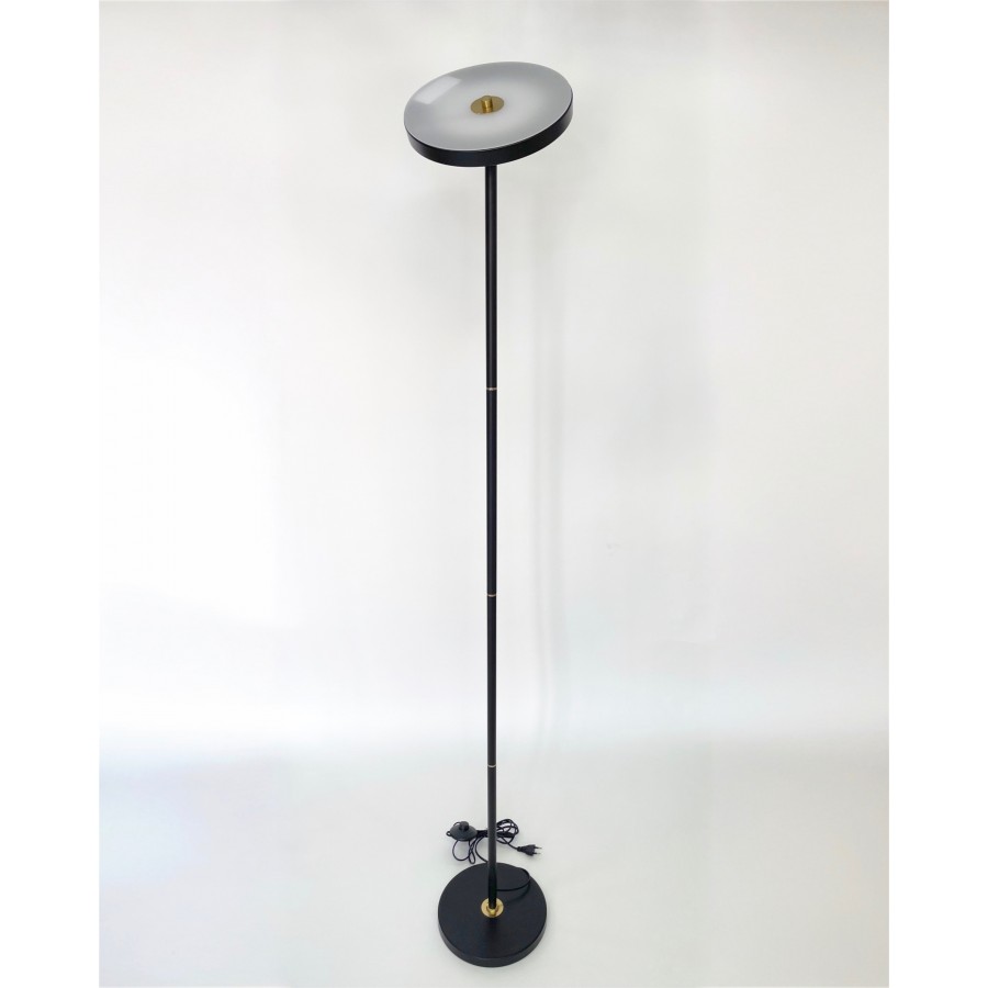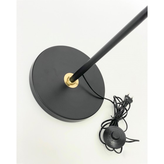 Lampadaire Noir Longueur 1,63cm Diamètre socle marbré 28cm Dimension chapeau: D40-32cm / L27cm Socle en marbre noir Tige...