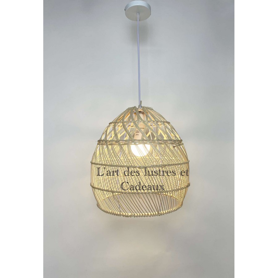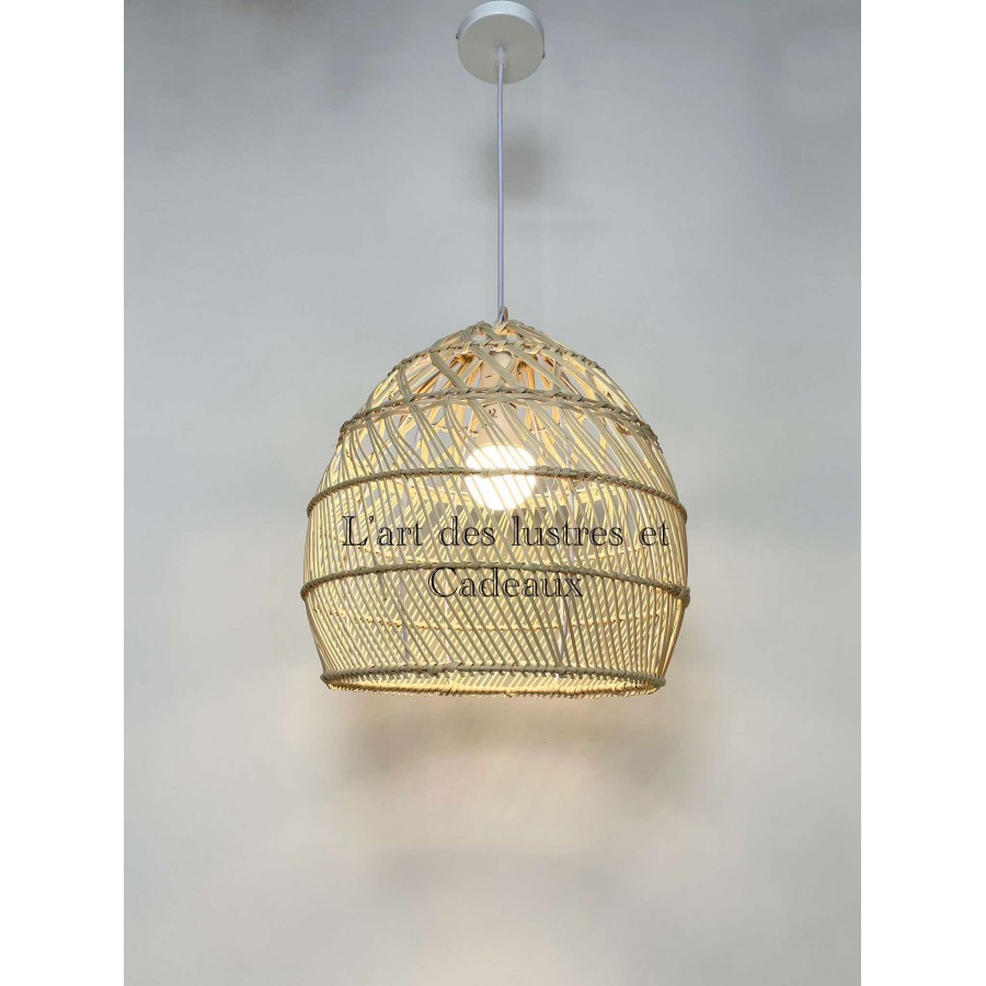 Lustre de 3 Matière métal + verre + corde Couleur noir Diamètre socle 23cm Dimension de chaque suspendue : H30cm-D18cm Hauteur...