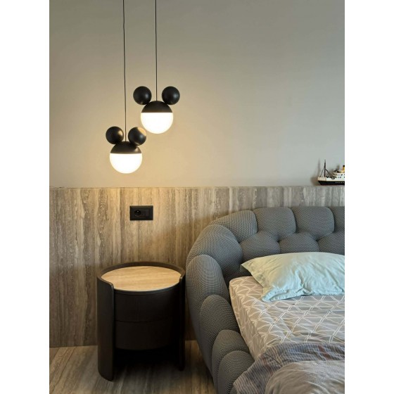 Lustre Mikey pour enfant Couleur noir vif Matière acrylique solide + métal solide Diamètre 17cm Hauteur fil réglable Eclairage...