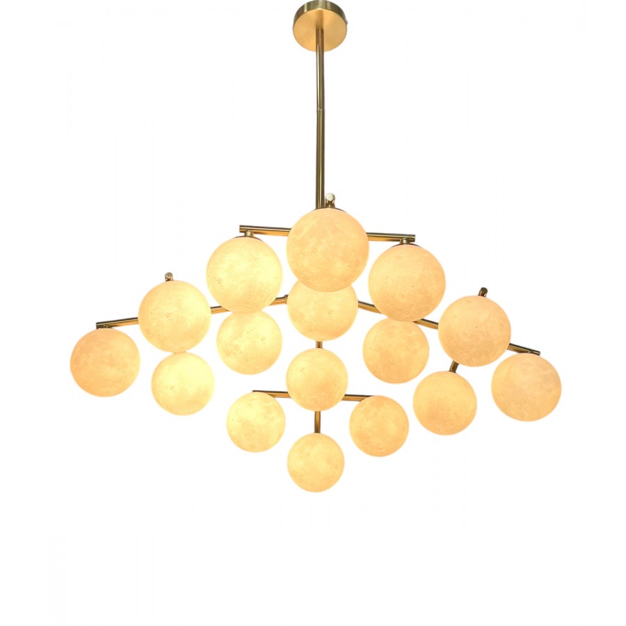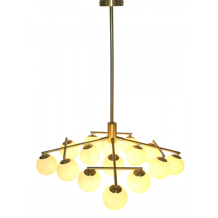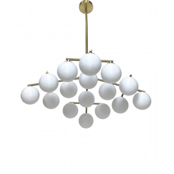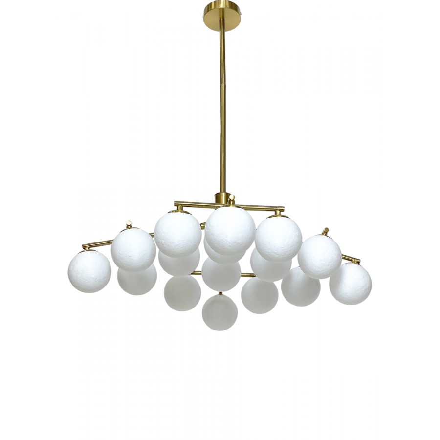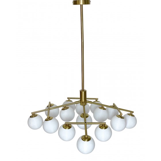 Lustre 13 boules Couleur doré brossé Diamètre 60cm Diamètre chaque boule 12cm Matière métal + verre Hauteur réglable jusqu'a...