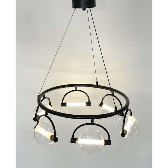 Lustre moderne Couleur noir Diamètre : 60cm 6 boules diamètre 12cm Hauteur réglable Matière métal + verre Eclairage led 3...