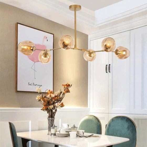 Lustre moderne Couleur doré Largeur 1,40cm Hauteur réglable 60cm-40cm-20cm 6 filetage E27