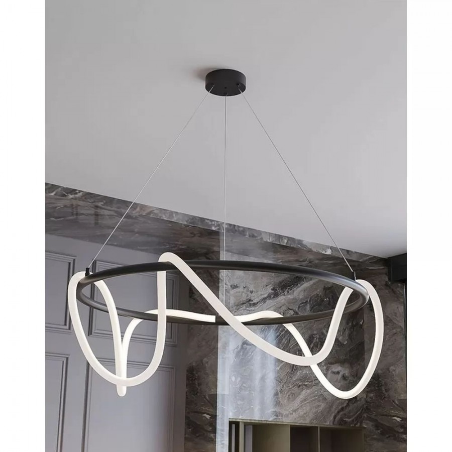 Lustre LED moderne Couleur noir Puissance 80W Eclairage led 3 couleurs:3000K-4000K-6500K Matière métal Dimension: 48,5*48,5cm...