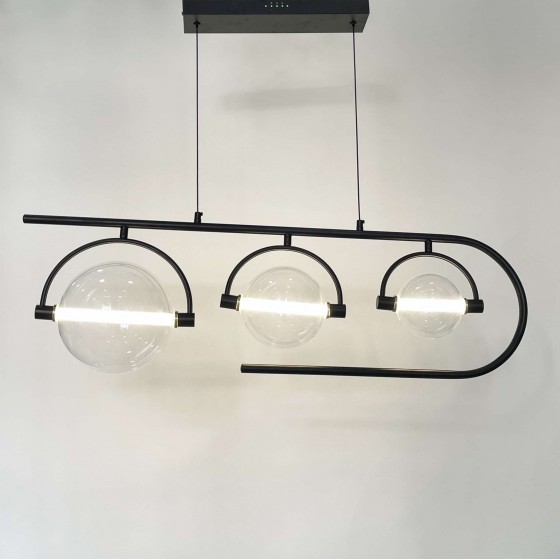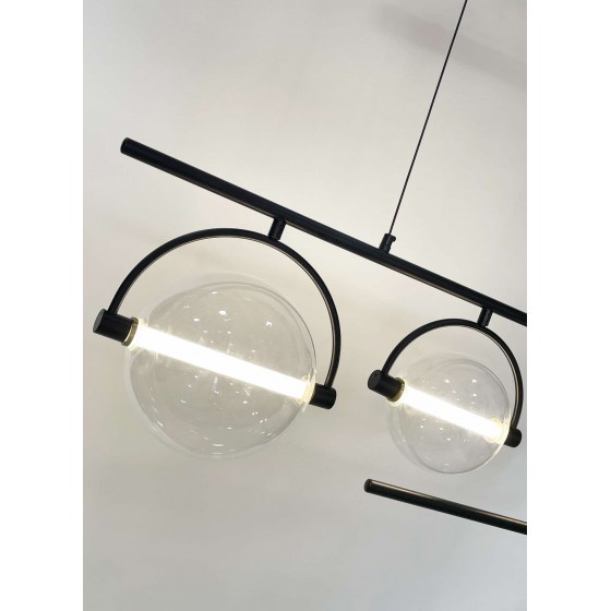 Lustre moderne Couleur noir Largeur 90cm Diamètre boule : 20cm-15cm-12cm Hauteur réglable Matière métal + verre Eclairage led...