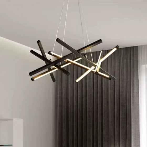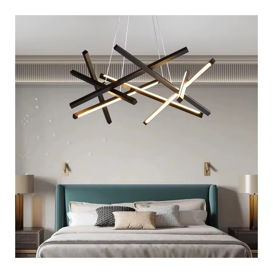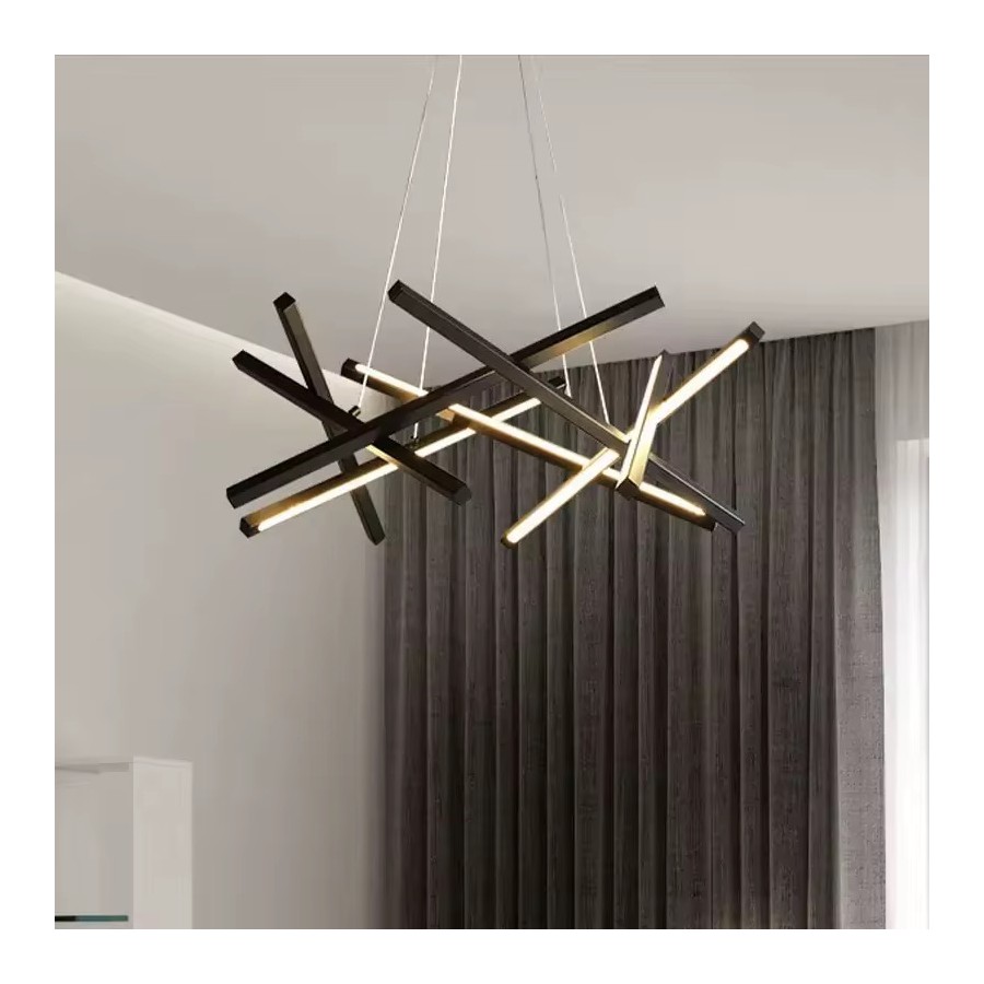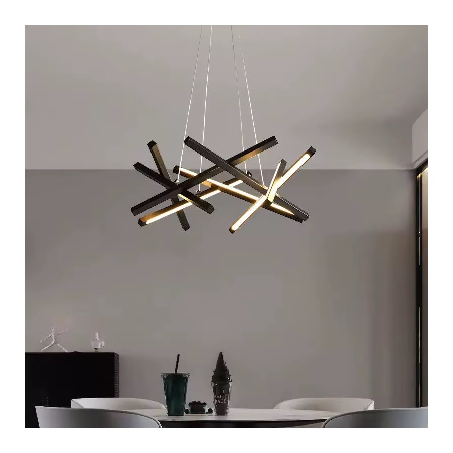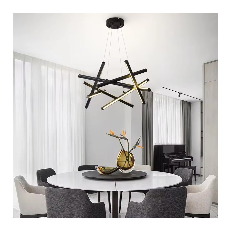 Lustre LED moderne Couleur noir Puissance 80W Eclairage led 3 couleurs:3000K-4000K-6500K Matière métal Dimension: 48,5*48,5cm...