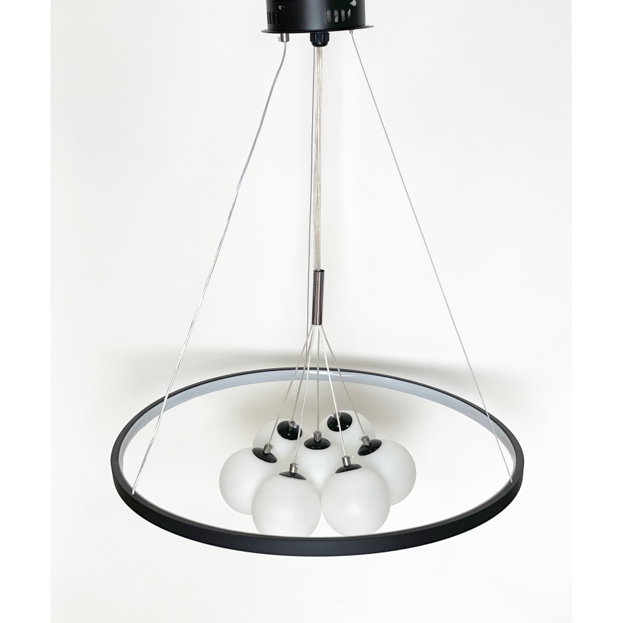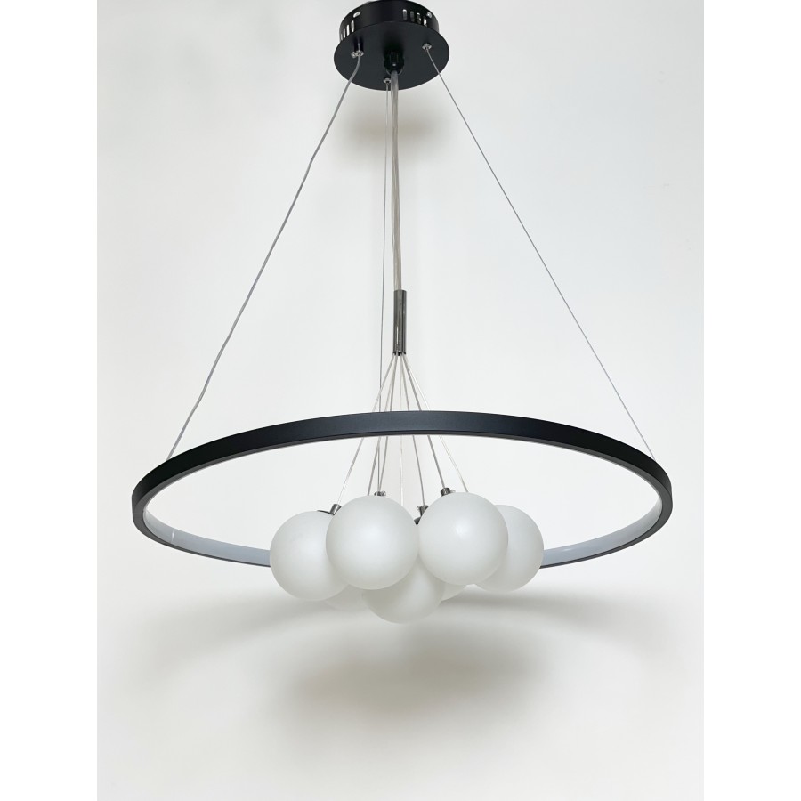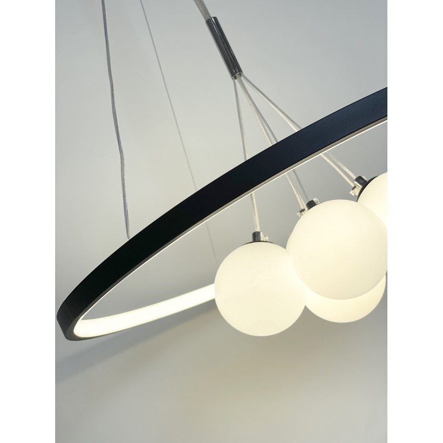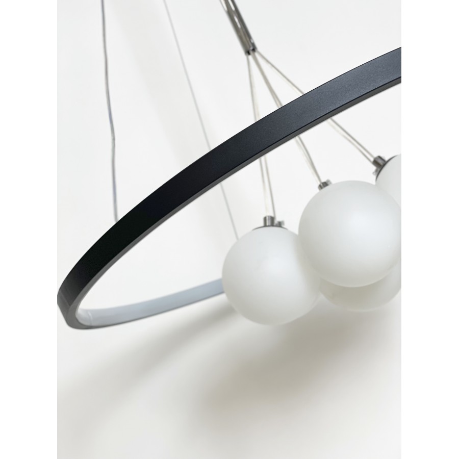 Lustre moderne Couleur noir Largeur 90cm Diamètre boule : 20cm-15cm-12cm Hauteur réglable Matière métal + verre Eclairage led...