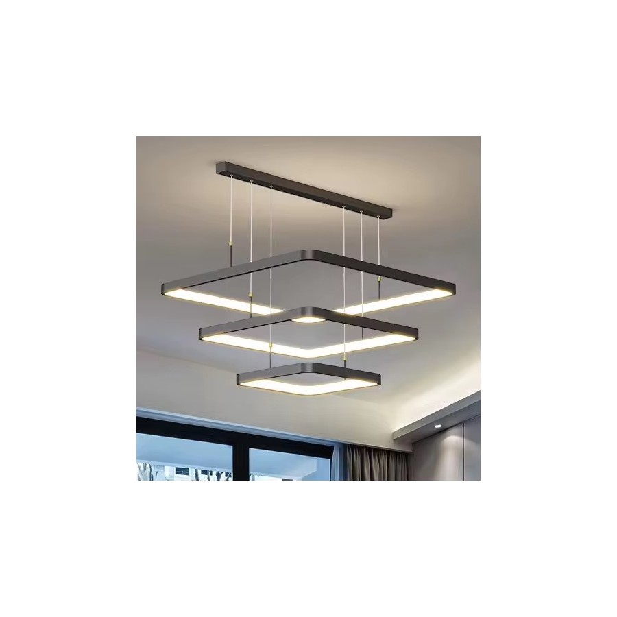 Lustre LED moderne Couleur noir Puissance 80W Eclairage led 3 couleurs:3000K-4000K-6500K Matière métal Dimension: 48,5*48,5cm...