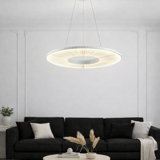 Lustre LED moderne Couleur noir Puissance 80W Eclairage led 3 couleurs:3000K-4000K-6500K Matière métal Diamètre 50cm Hauteur...