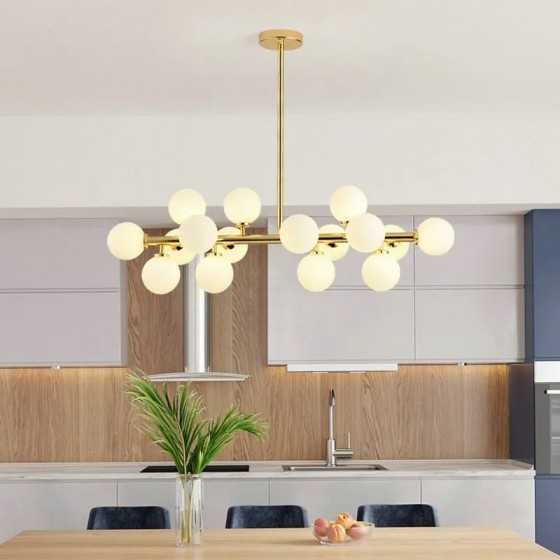 Lustre doré brillant Diamètre 100cm Matière métal + verre Couleur doré brillant 12 boules filetage G9