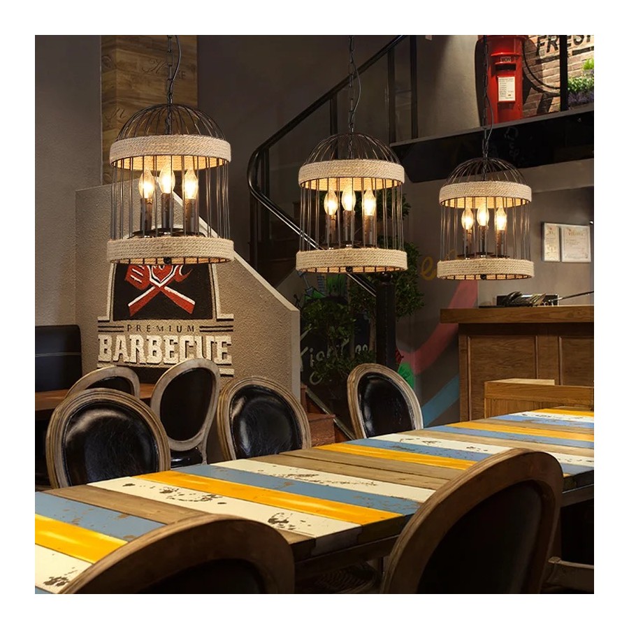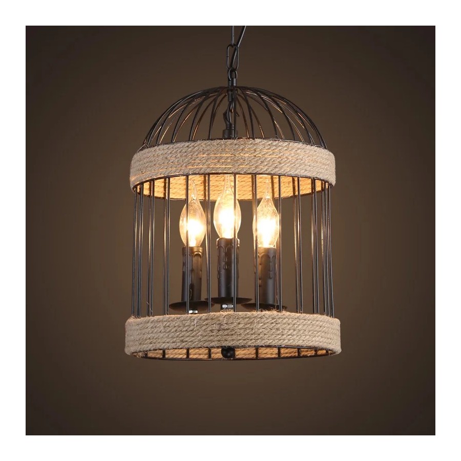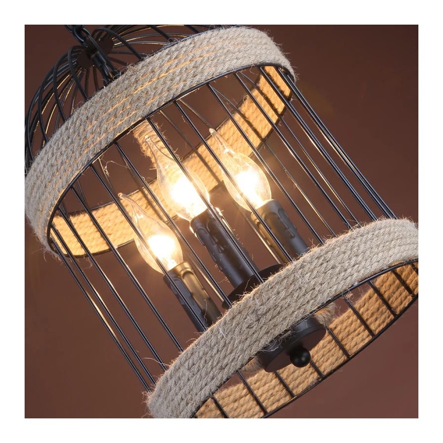 Lustre de 3 Matière métal + verre + corde Couleur noir Diamètre socle 23cm Dimension de chaque suspendue : H22cm-D15cm Hauteur...