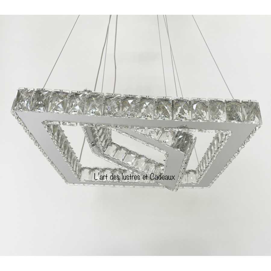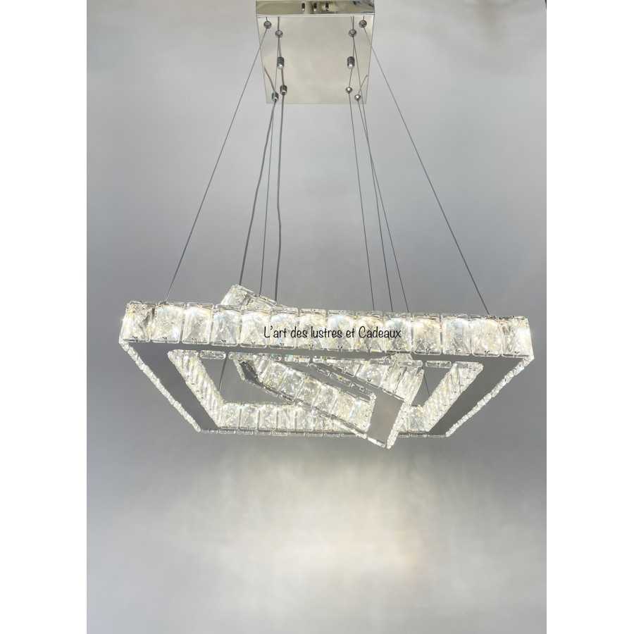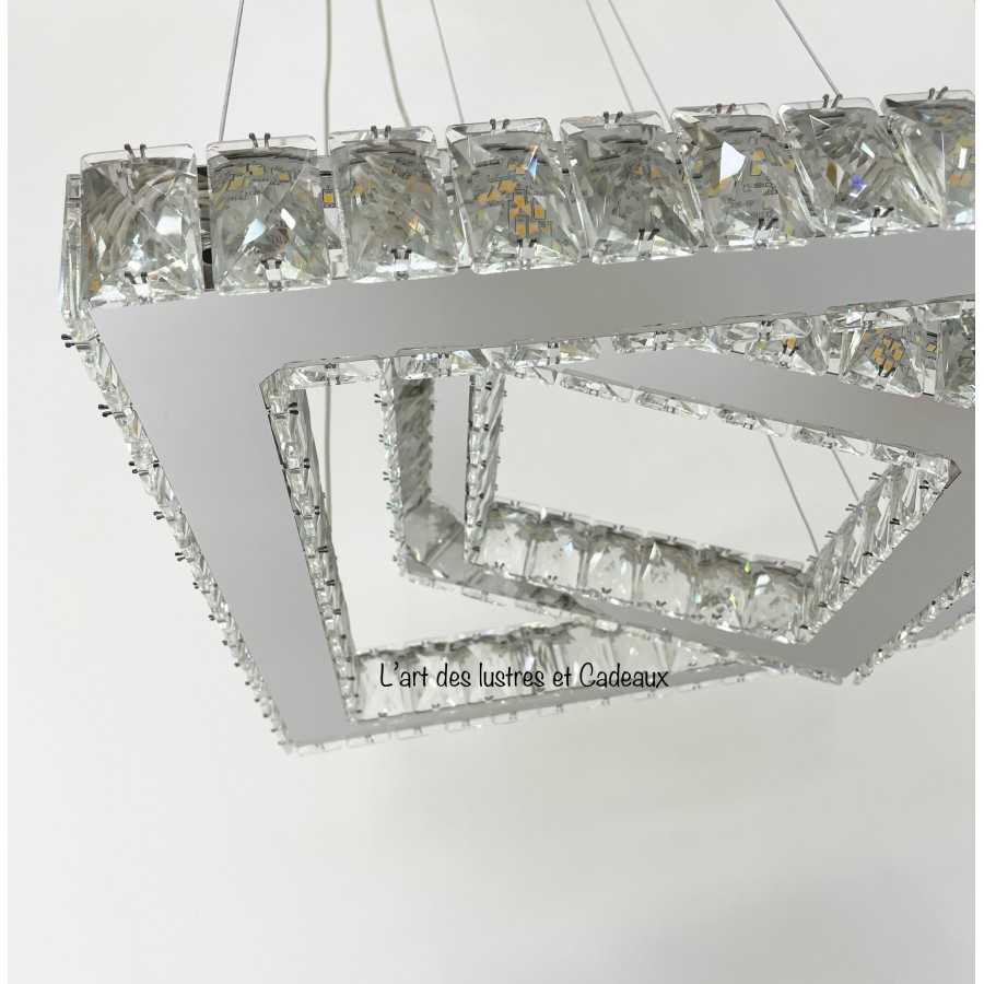 Lustre Crystal avec commande Couleur doré brillant Dimension :44cm*44cm+27cm*27cm Matière métal INOXYDABLE + Crystal...