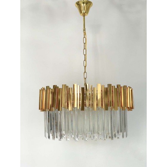 Lustre cristal Couleur doré brillant Diamètre disponible 30cm-40cm-50cm-60cm Matière métal + verre Métal inoxydable Filetage...
