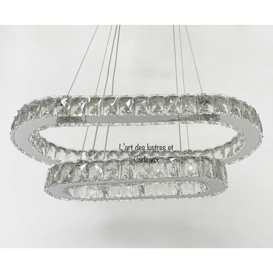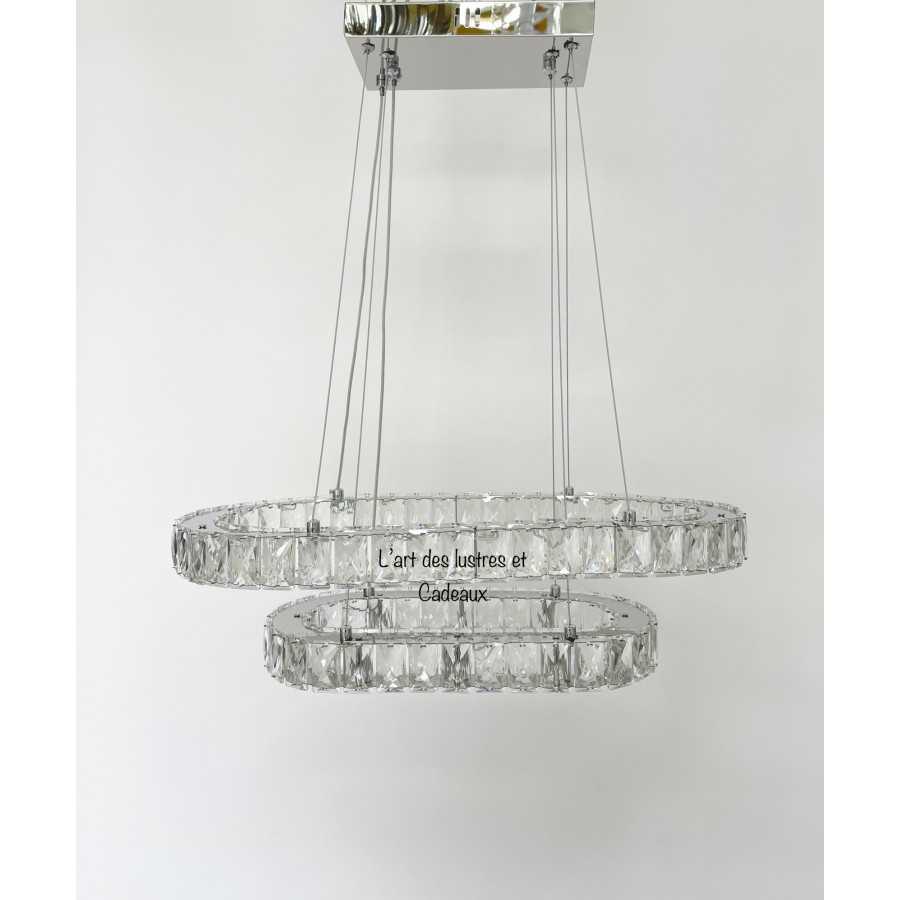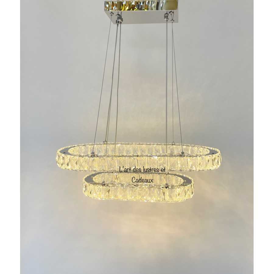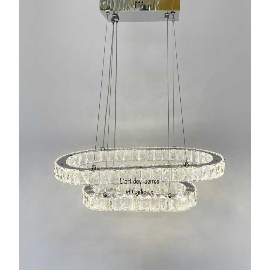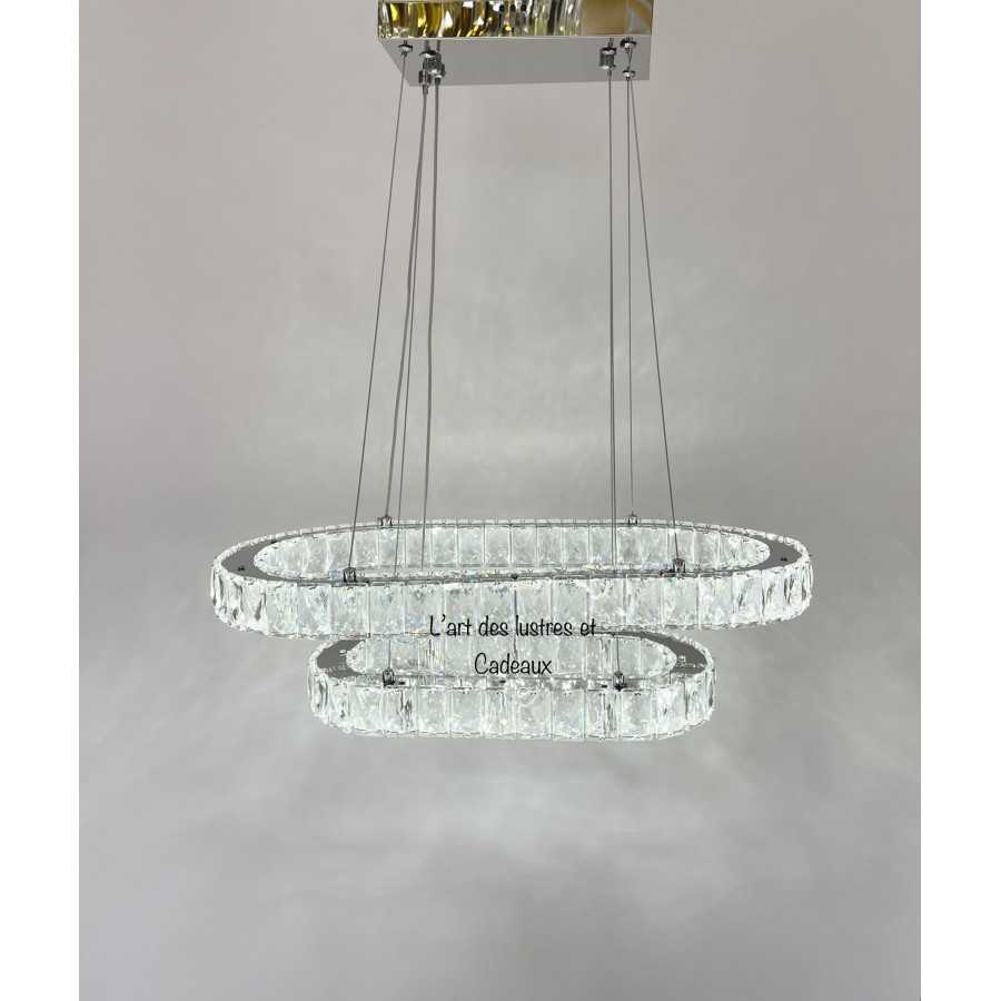Lustre crystal Oval 100cm*35cm Couleur doré brillant Matière métal inoxydable + crystal Hauteur réglable 10 Filetage E27