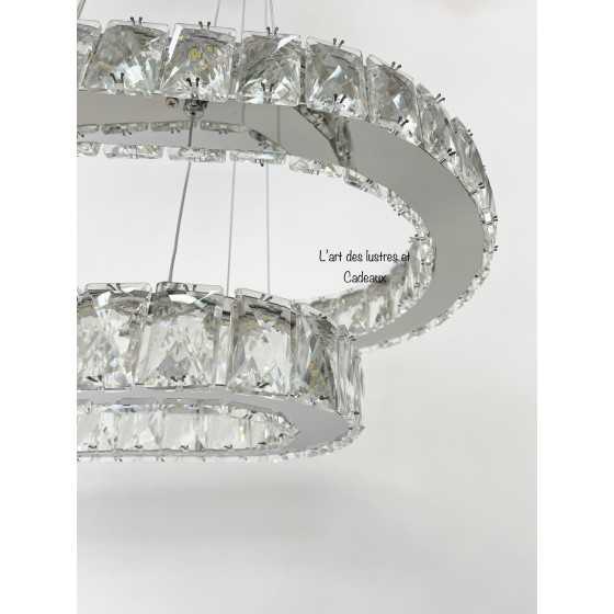 Lustre Crystal avec commande Couleur chromé Dimension :44cm*44cm+27cm*27cm Matière métal INOXYDABLE + Crystal Eclairage 3...