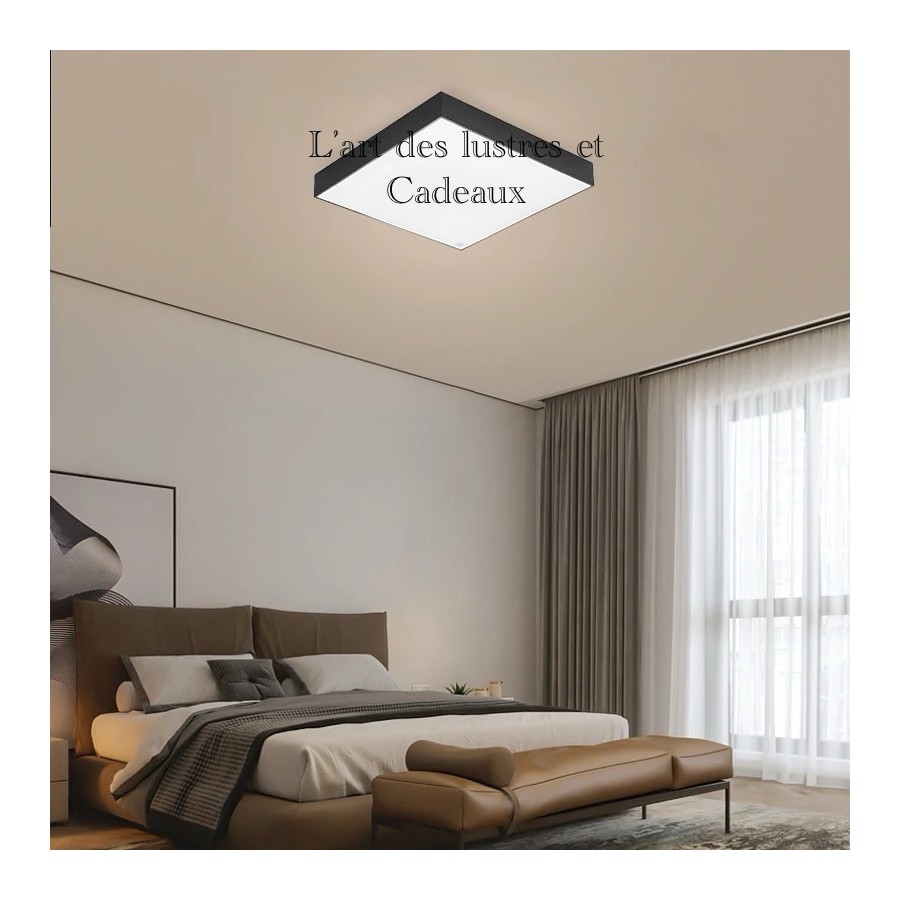 Plafonnier Carré Couleur Noir+Blanc Eclairage led 3 couleurs:6500K-4000K-3000K Matière métal + plexi Dimension: 48*48 CM