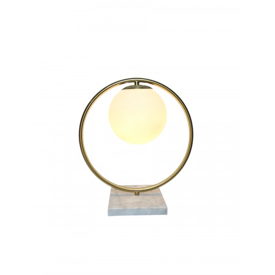 Veilleuse moderne Couleur doré Matière métal + verre + marbre Hauteur 33cm Diamètre boule 15cm Dimension socle 14*14cm...